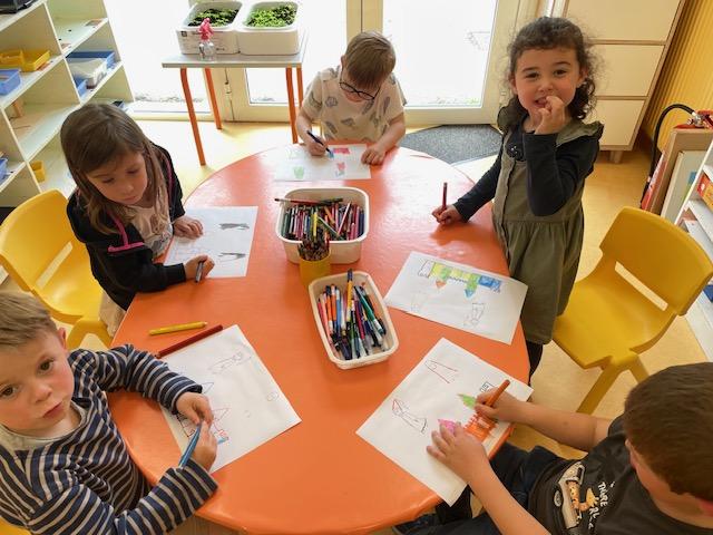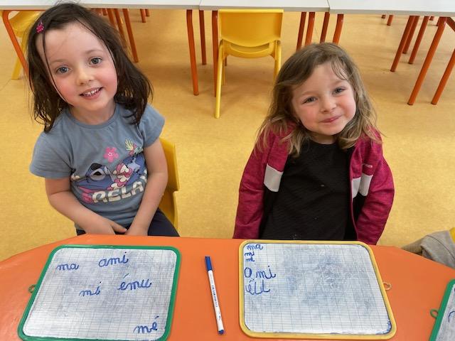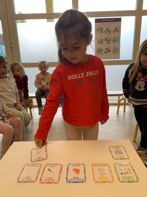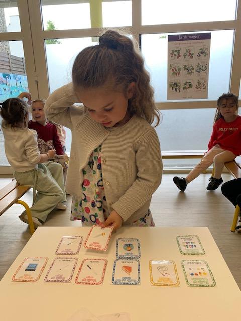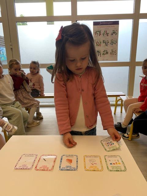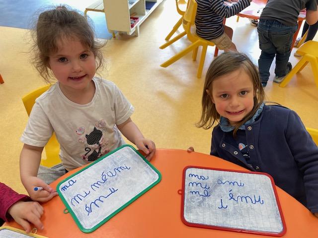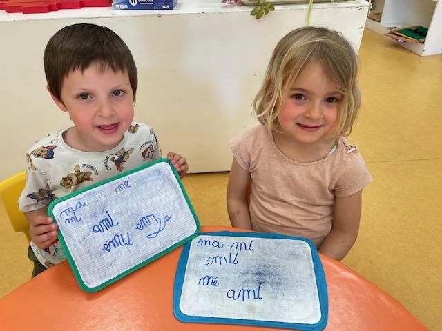 Cette semaine, les MS ont découvert la symétrie. Certains ont lu et écrit en lettres cursives des petits mots. D’autres se sont entraînés à repérer les syllabes d’attaque (première syllabe d’un mot). Les PS ont revu les dangers domestiques avec Zabou.