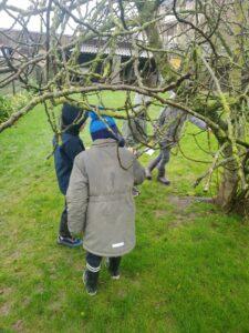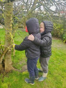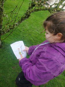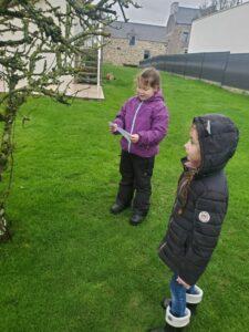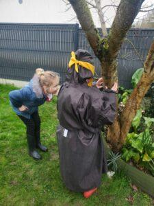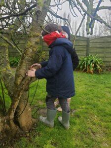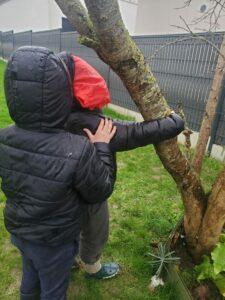 Après avoir échangé autour de Pico le hérisson, les élèves se sont prêtés au jeu “mon ami arbre”. L’objectif était ici de reconnaître un arbre les yeux bandés. Un grand merci à Simone qui nous a laissé découvrir les arbres de son jardin tout en profitant d’un abris.