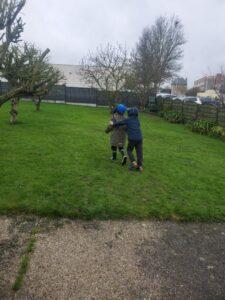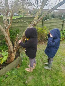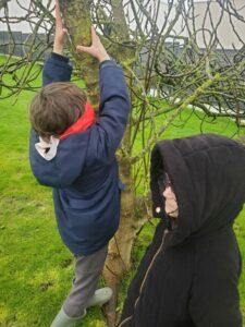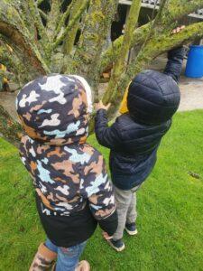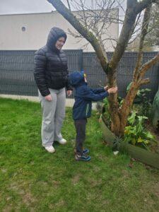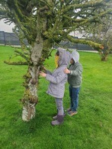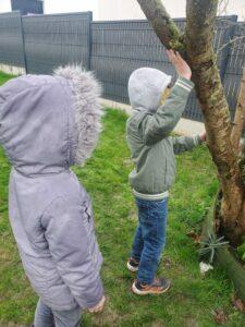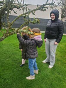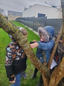 Les GS-CP ont bravé la pluie pour une nouvelle séance découverte autour de l’arbre en hiver.