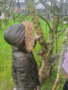 Les élèves ont ensuite enquêté sur les trois espèces végétales colonisant les arbres : mousse, lichen et lierre, grâce à une fiche d’observation.