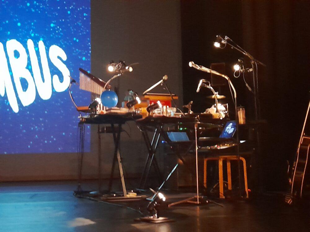 La journée a commencé par un spectacle original, mêlant théâtre et dessins animés. Deux acteurs, seuls sur scène, donnaient vie à une galerie de personnages grâce à un jeu de bruitages impressionnants : voix modulées,instruments de musique et autres objets détournés de fabrication maison comme des appeaux, des clochettes, des petits jouets cassés, des bobines magnétiques de cassettes audio…Tout était réalisé en direct, ce qui a beaucoup amusé et émerveillé les élèves. Ils ont pu voir comment, avec peu de choses, on peut créer un univers complet: