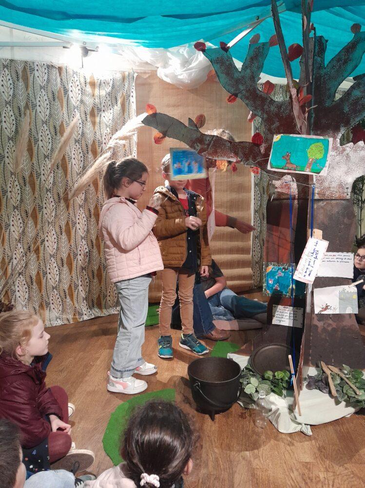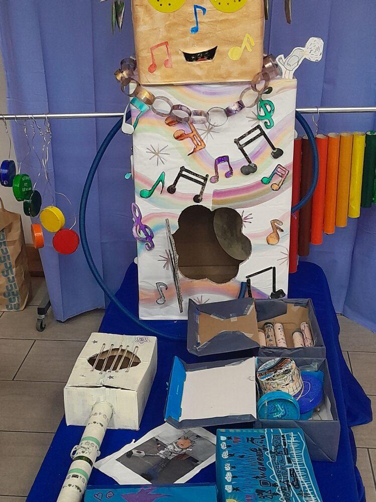 Après cette représentation rythmée, les élèves ont poursuivi leur visite en découvrant une exposition regroupant les œuvres de plusieurs écoles répondant au thème du festival “images et sons”. Ils y ont admiré des productions variées, témoignant de la créativité des enfants comme l’arbre à sons, un photomaton avec des onomatopées, des histoires contées…