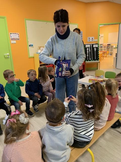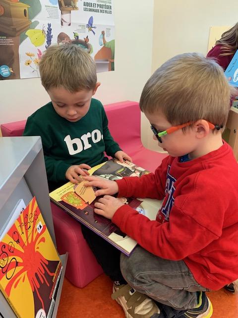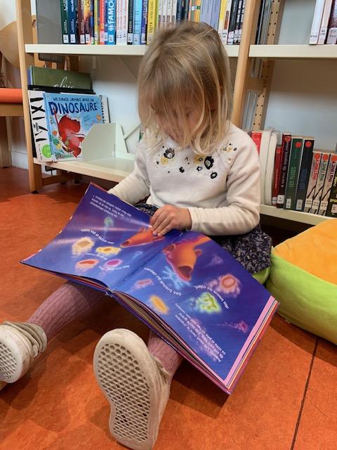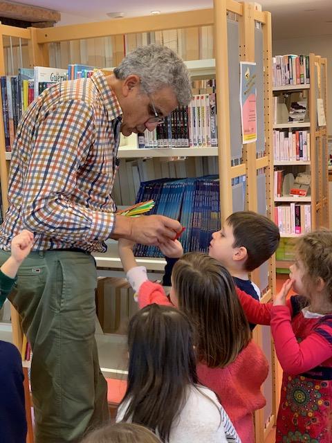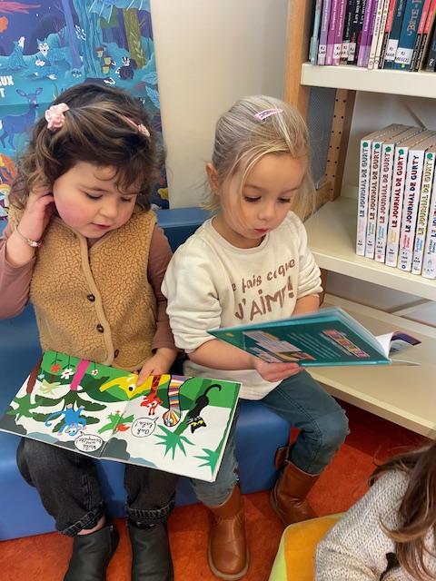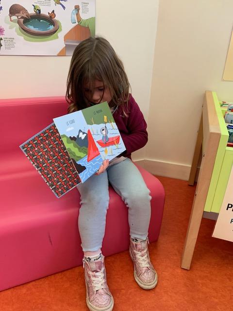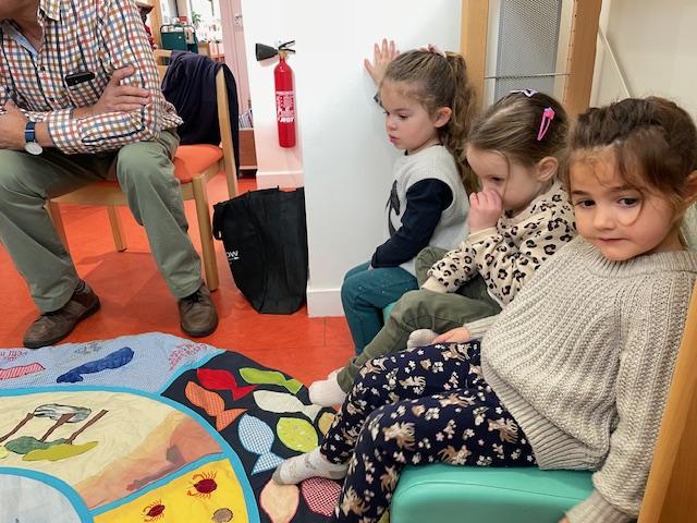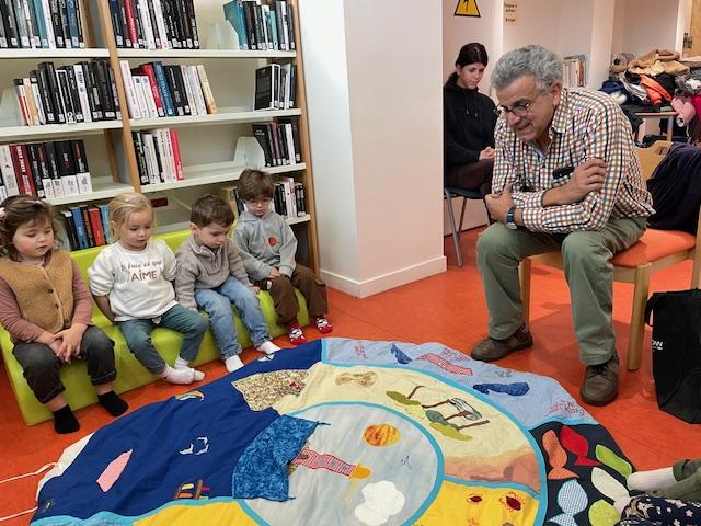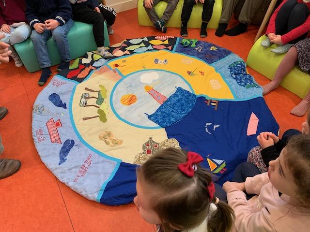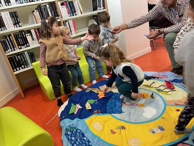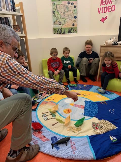 Nous nous sommes rendus à la bibliothèque où Vladimir et Christelle nous ont raconté une histoire sur le milieu marin, à l’aide d’un “raconte tapis”.