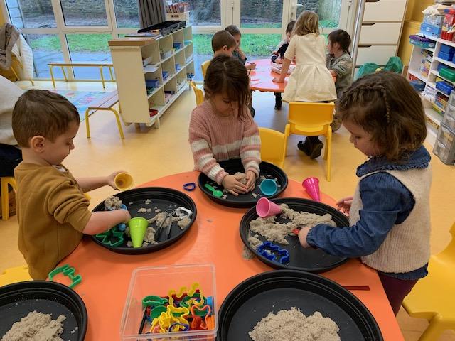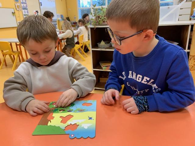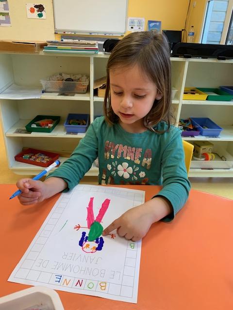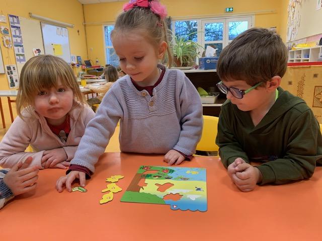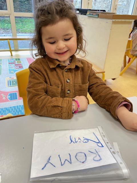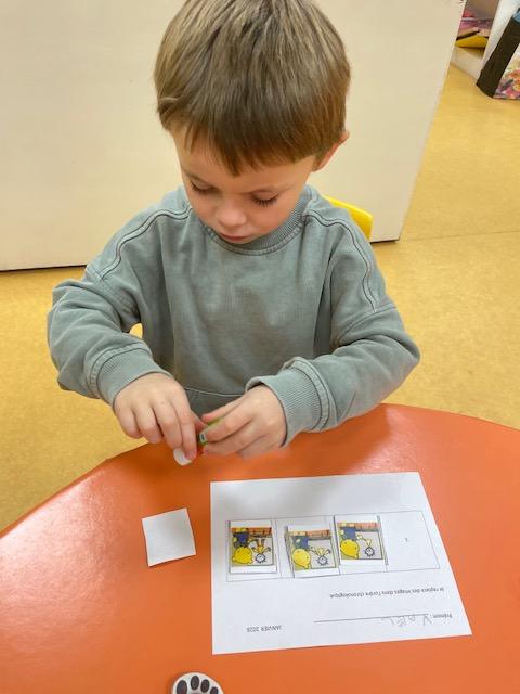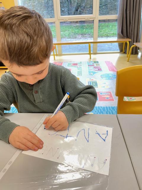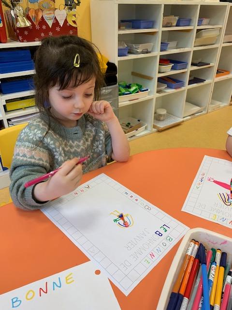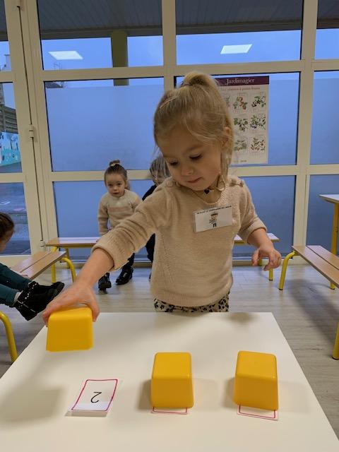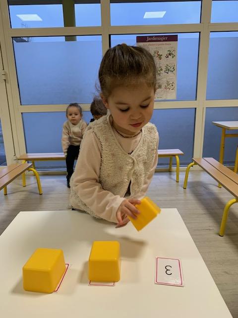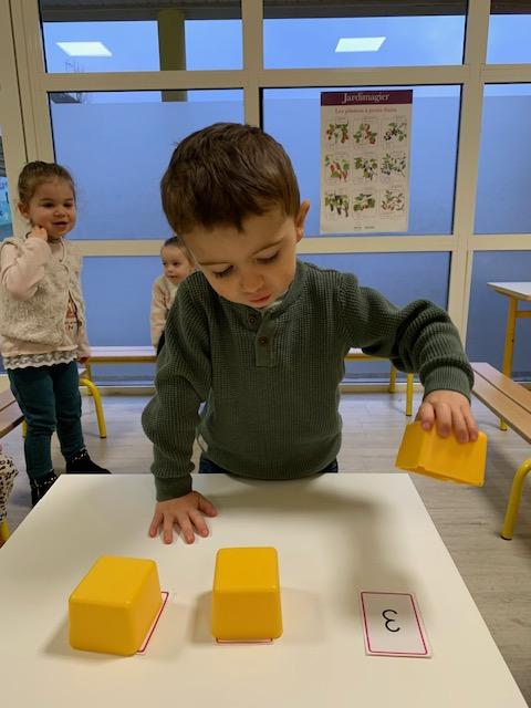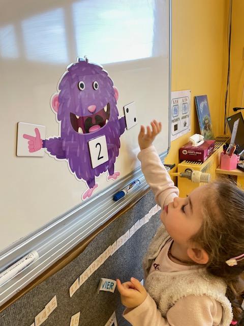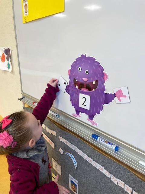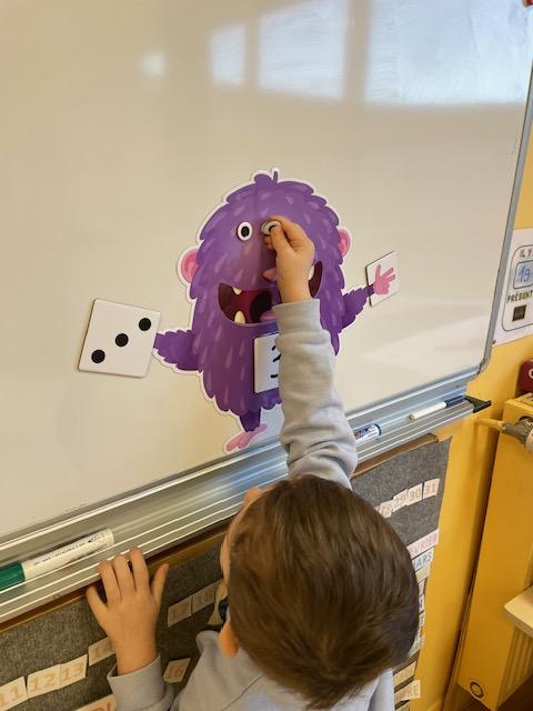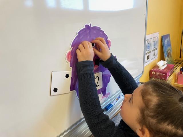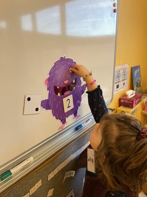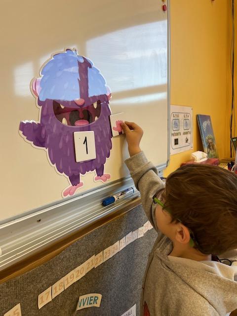 Les PS apprennent à écrire leurs prénoms. Ils ont découvert le monstre à compter qui les aide à mémoriser les différentes représentations des nombres jusqu’à 3.