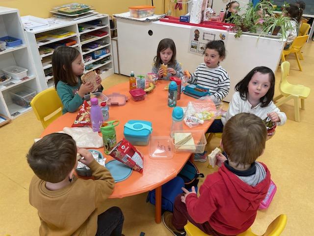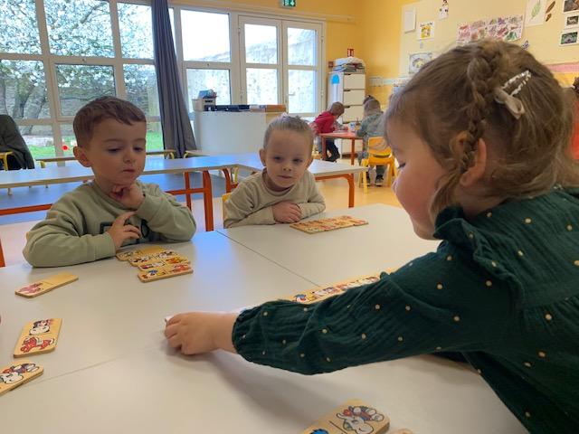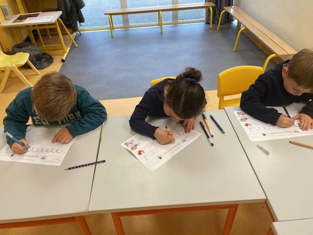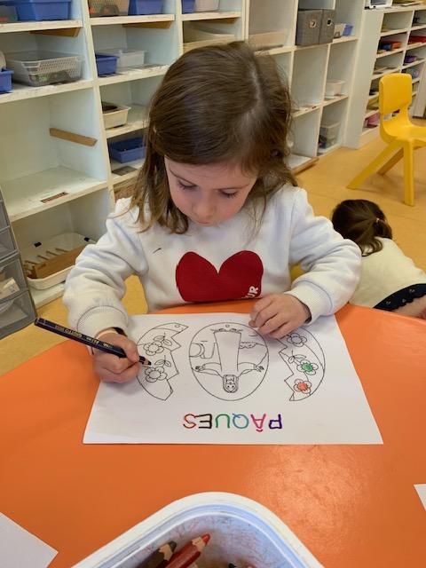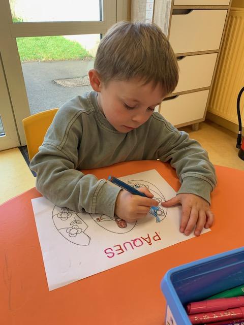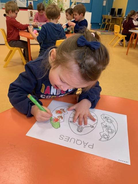 Au programme de cette nouvelle semaine : graphisme ou écriture, dominos, musique avec Charlotte,  coloriage, célébration de Pâques, pique-nique dans la classe …
