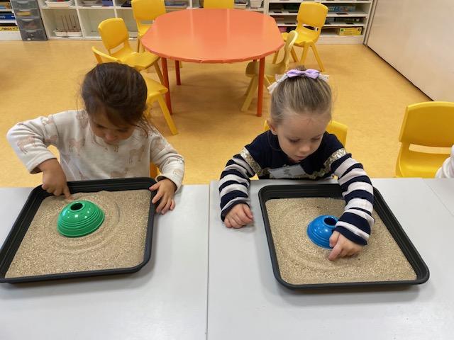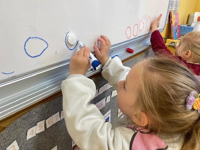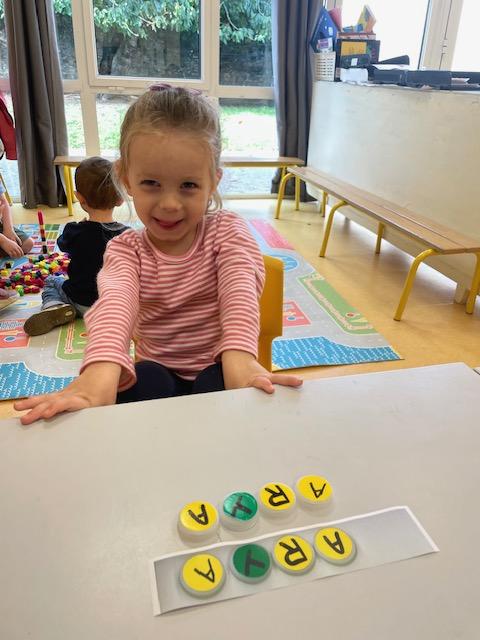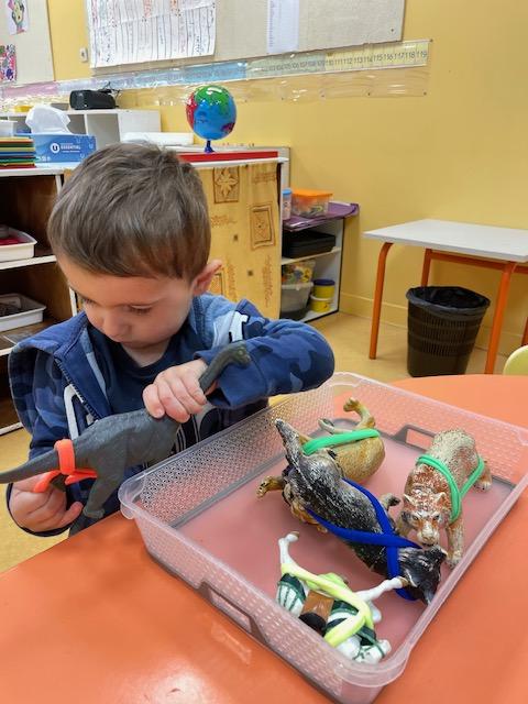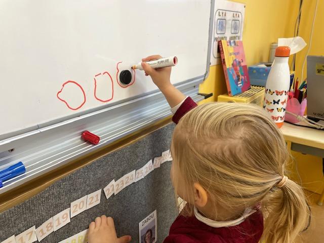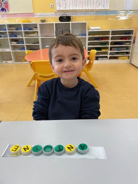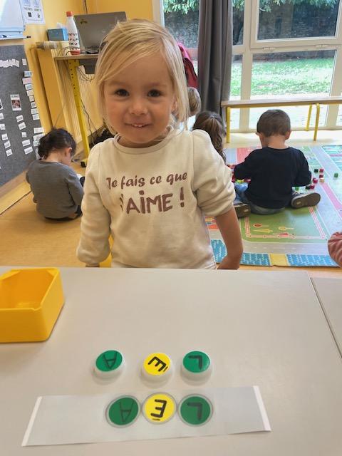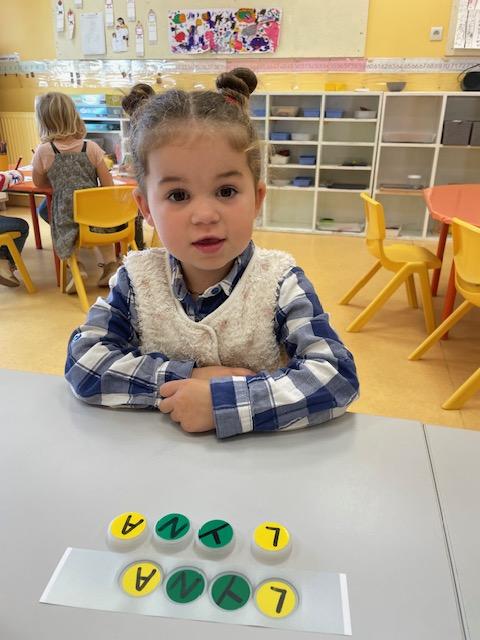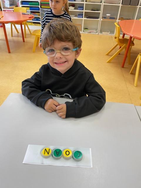 Les PS commencent à reconstituer leurs prénoms avec des lettres mobiles. Les MS apprennent à l’écrire dans un chemin ou sur une ligne.