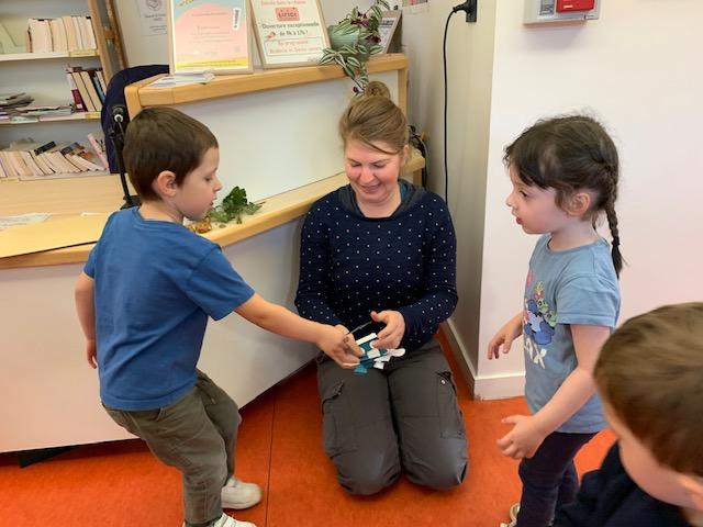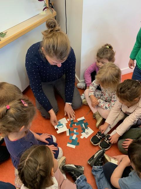 Avec les plus grands, nous avons revu les formes géométriques (cercle, carré, triangle, rectangle).