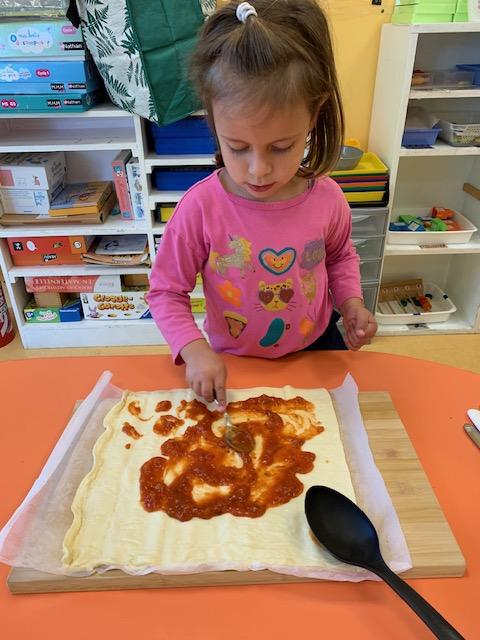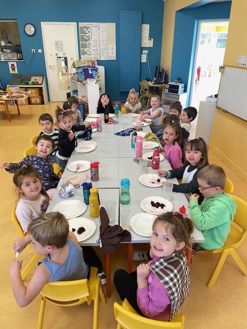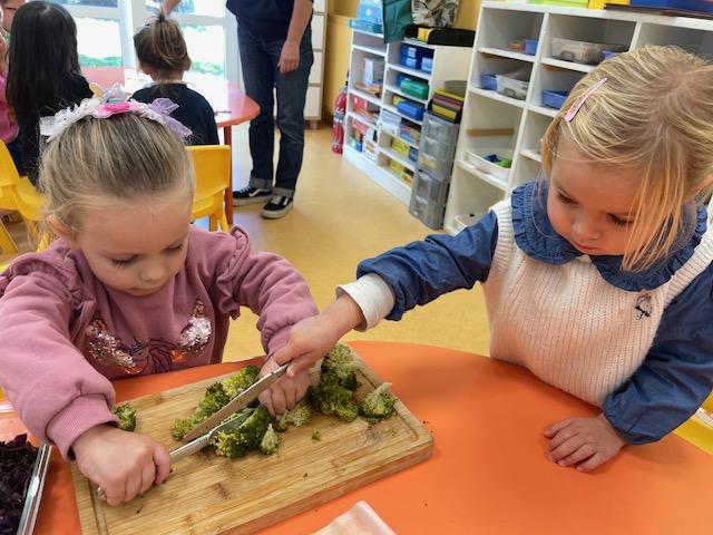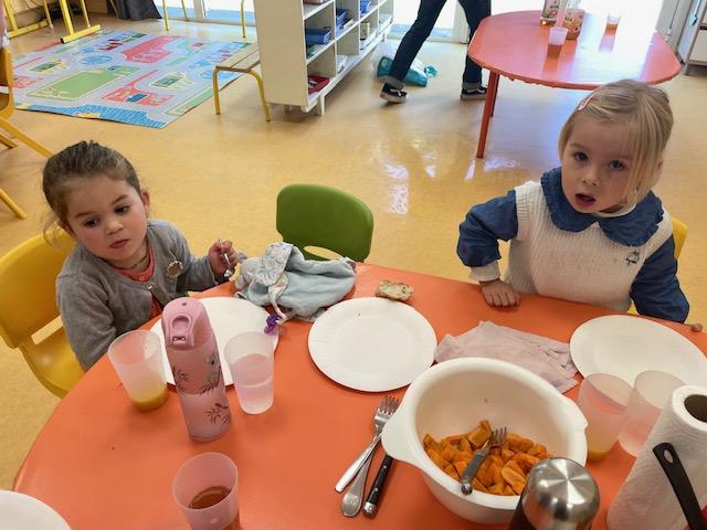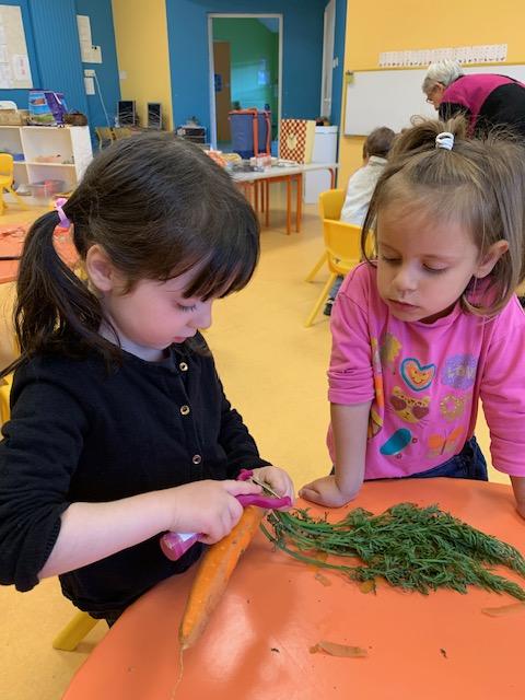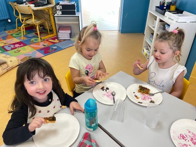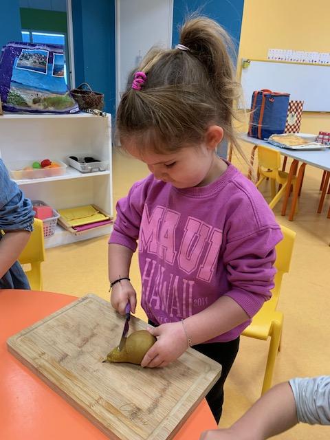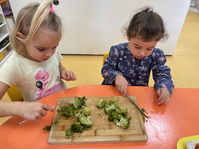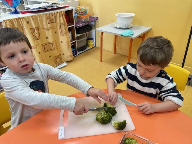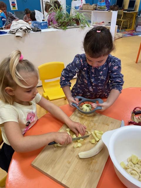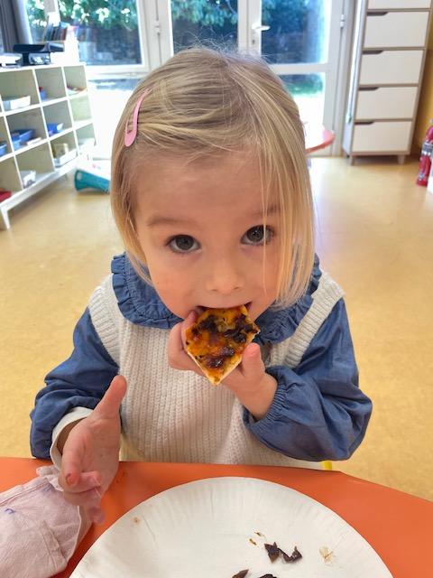 Nous avons vécu 2 moments forts lors de cette semaine 7 : lundi, nous avons fait classe dans la nature et vendredi, nous avons cuisiné notre repas du midi : crudités, pizzas aux légumes, salades de fruits, pizzas au chocolat.