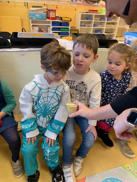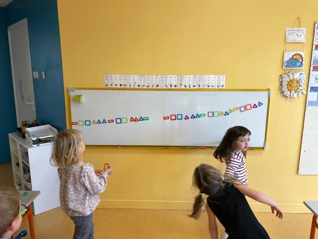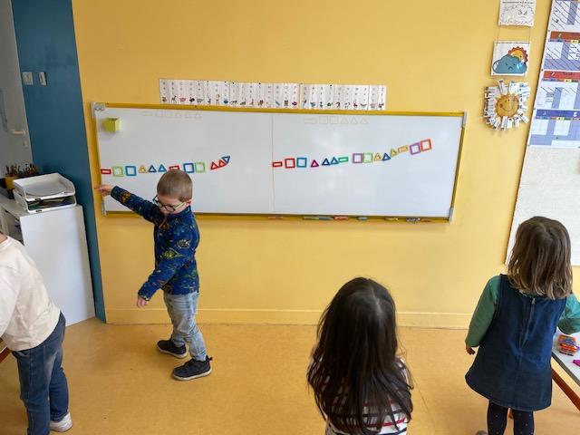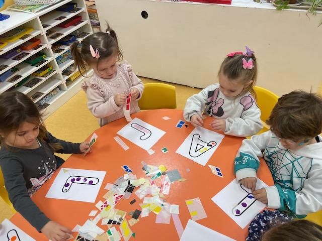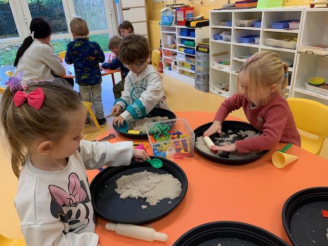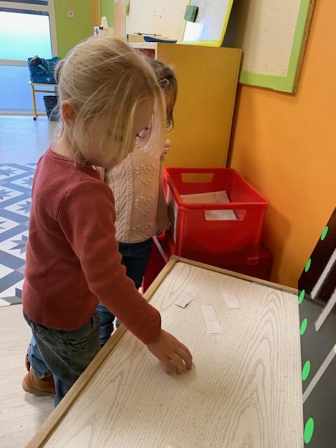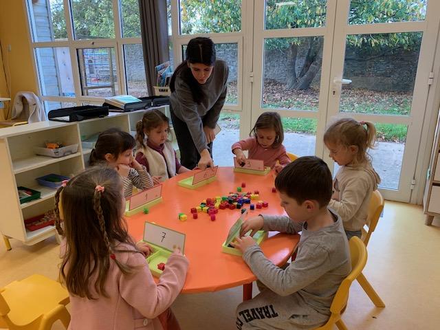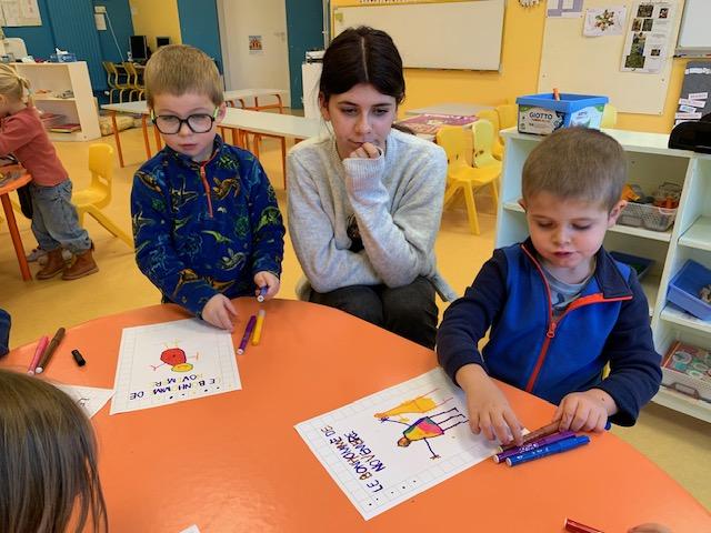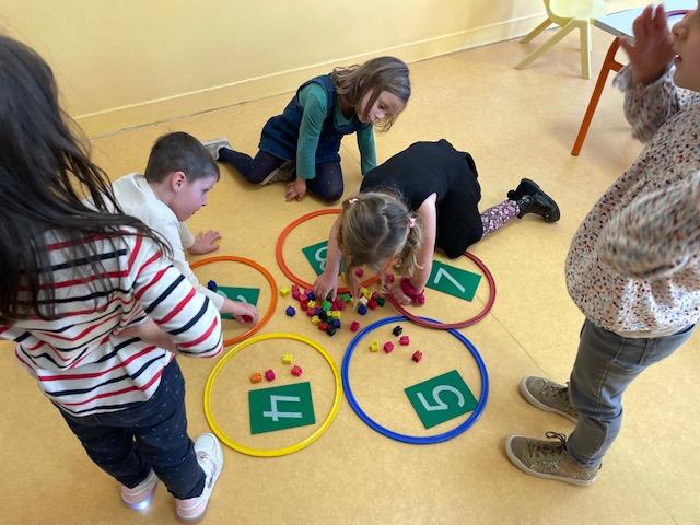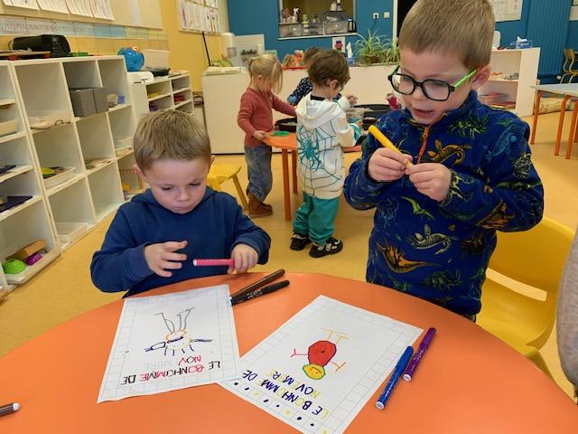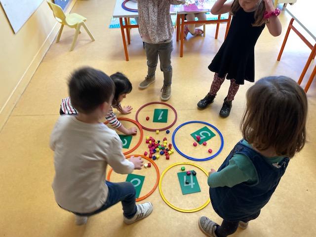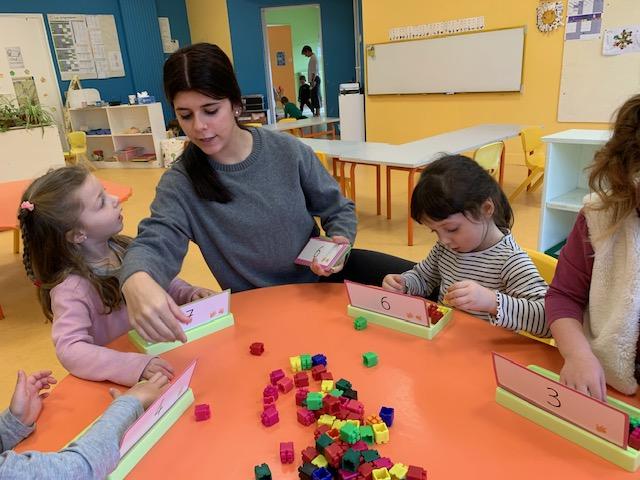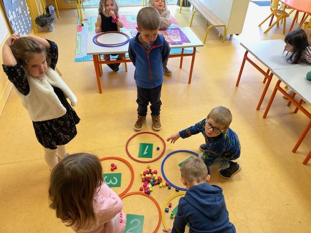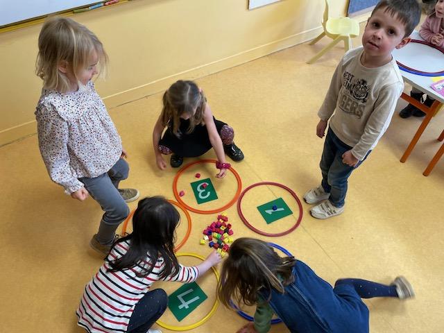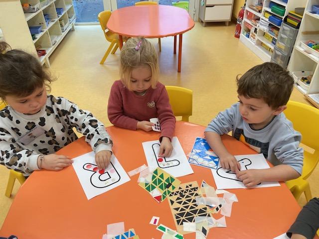 Les PS travaillent encore la reconnaissance et l’écriture de leurs prénoms. Les MS comptent, dénombrent, écrivent les chiffres.