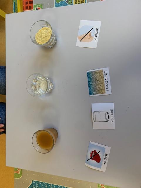 Nous avons observé quelques caractéristiques de l’eau : elle est liquide, incolore, transparente, inodore et insipide.