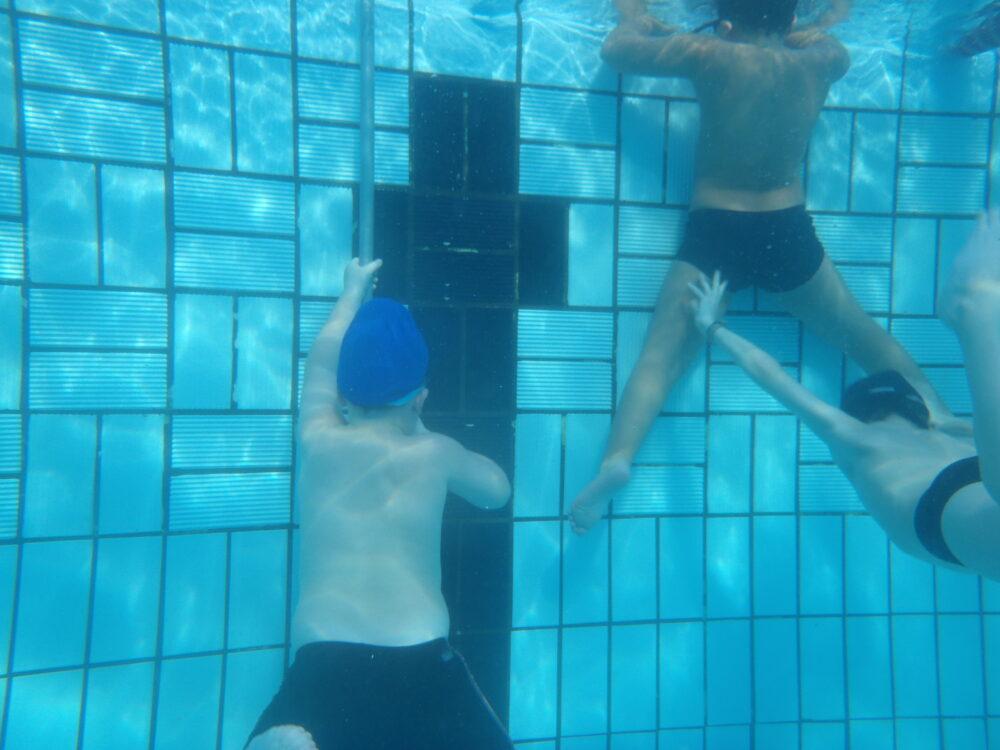 Pour que les séances se déroulent au mieux et en toute sécurité pour vos enfants, nous avons deux parents-accompagnateurs qui viennent nous aider et notamment Mr Duval, moniteur de plongée, qui nous assiste à chaque séance et qui s’est proposé de vous offrir quelques photos originales de vos enfants sous l’eau.